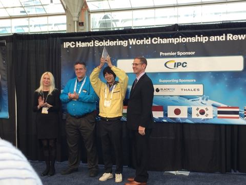 電子機器国際標準化団体のIPC Asia Pacificが開催したはんだ付け技術を競う世界大会の「IPCはんだ付・リワークワールドチャンピオンシップ2019」において、日本代表の松並亮輔氏(滋賀県守山市、株式会社ピーダブルビー)が、史上初となる満点で優勝をはたした。