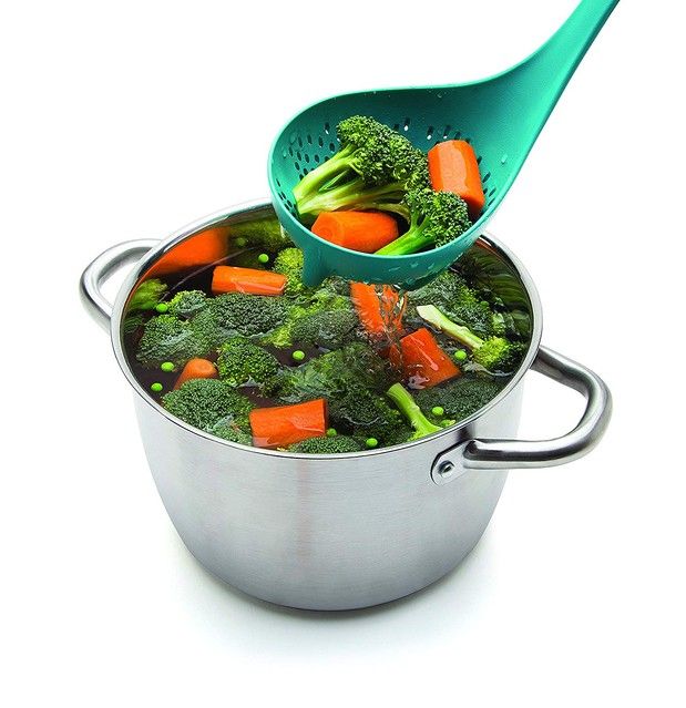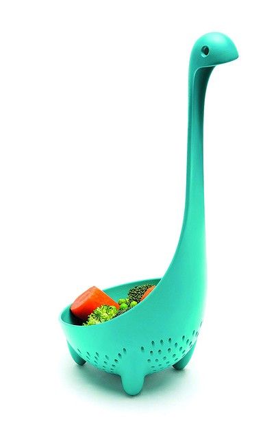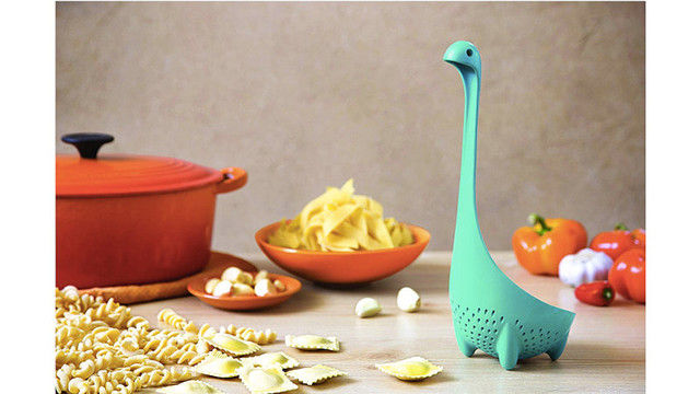 お鍋の中からネッシーがひょっこり。おたまスタンドが付いて、小さいザルにもなる優れモノだよ~