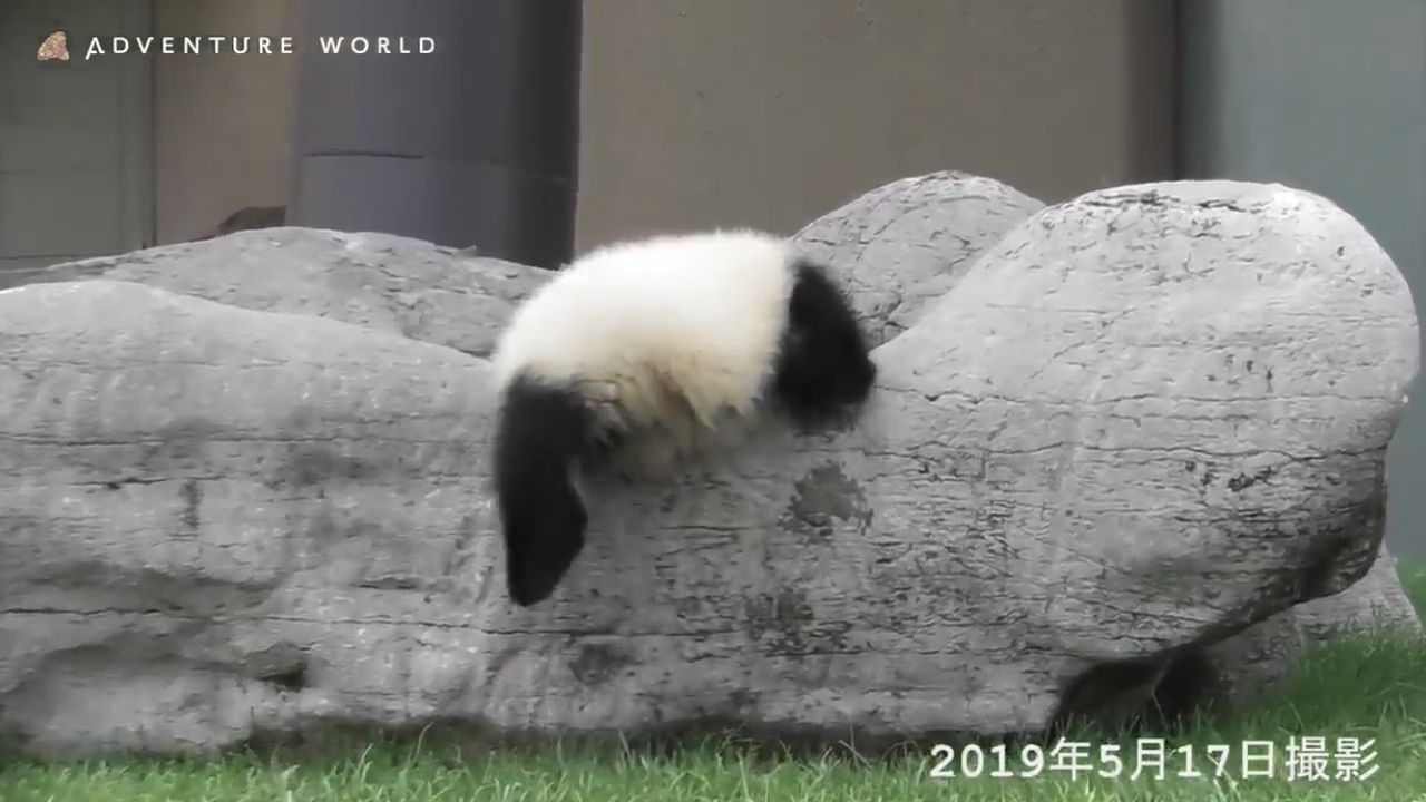 ザザザーっと堀へ落ちるパンダの赤ちゃん「彩浜」。なぜかお尻から上がろうとチャレンジしますが…結局はしごを使って元の場所へ。その後もひっくり返ったり落ちたり元気いっぱい!今日もアグレッシブに遊んでいます。276日齢(5月17日)の体… https://t.co/Sza7ZZ2pBm