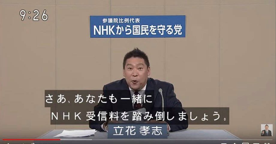 NHKから国民を守る党の立花孝志党首が
