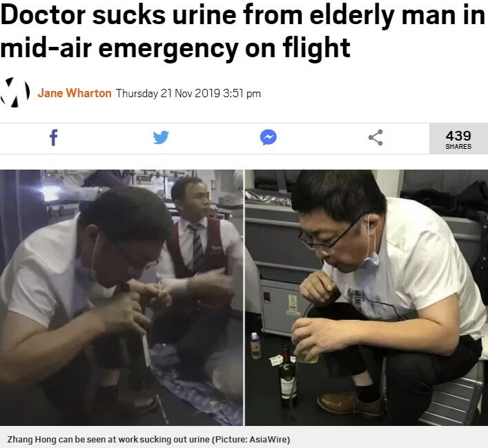 広州白雲国際空港を発ちニューヨーク・ジョン・F・ケネディ国際空港へ向かう中国南方航空機内で今月19日、ある男性が冷や汗をかいて苦しんでいることに客室乗務員が気付いた。