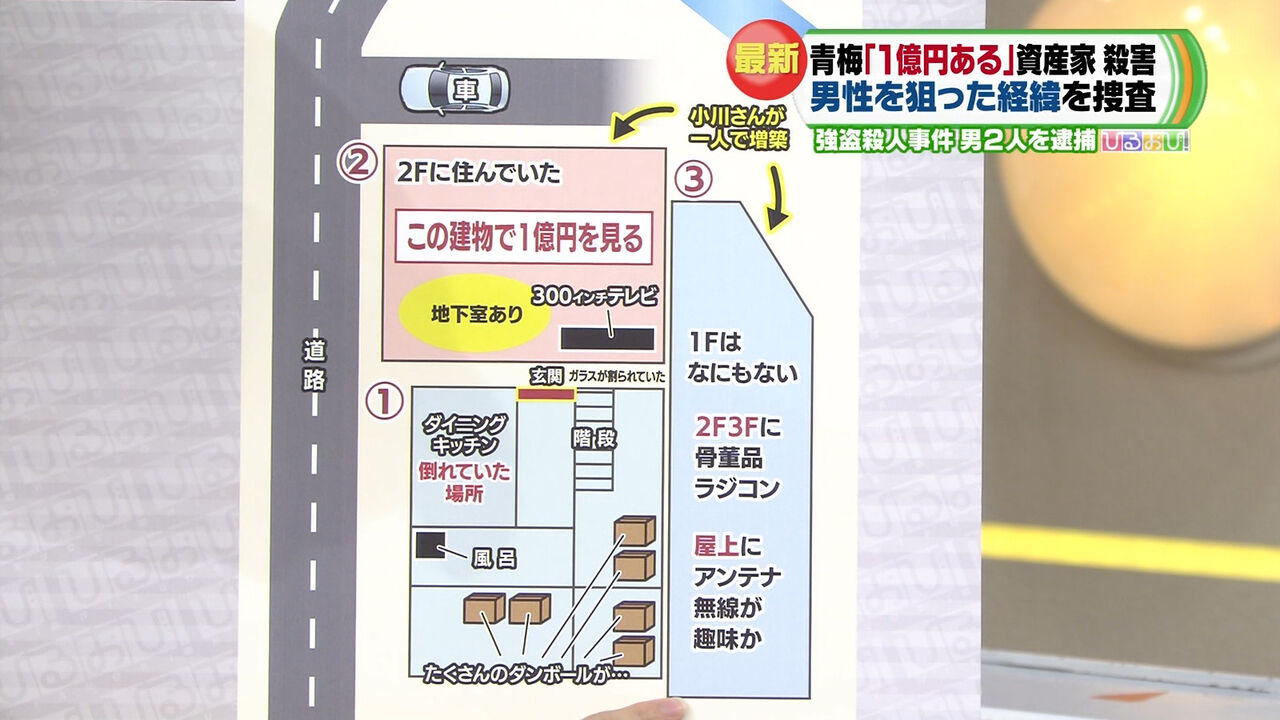 小川さんは以前、知人らにジュラルミンケースに入った1億円分の現金を見せていて、ジュラルミンケースは母屋に隣接する建物に手つかずで残されていたが、中身は紙でかさ上げされ、表面だけ現金10万円が敷き詰められたものだったという。