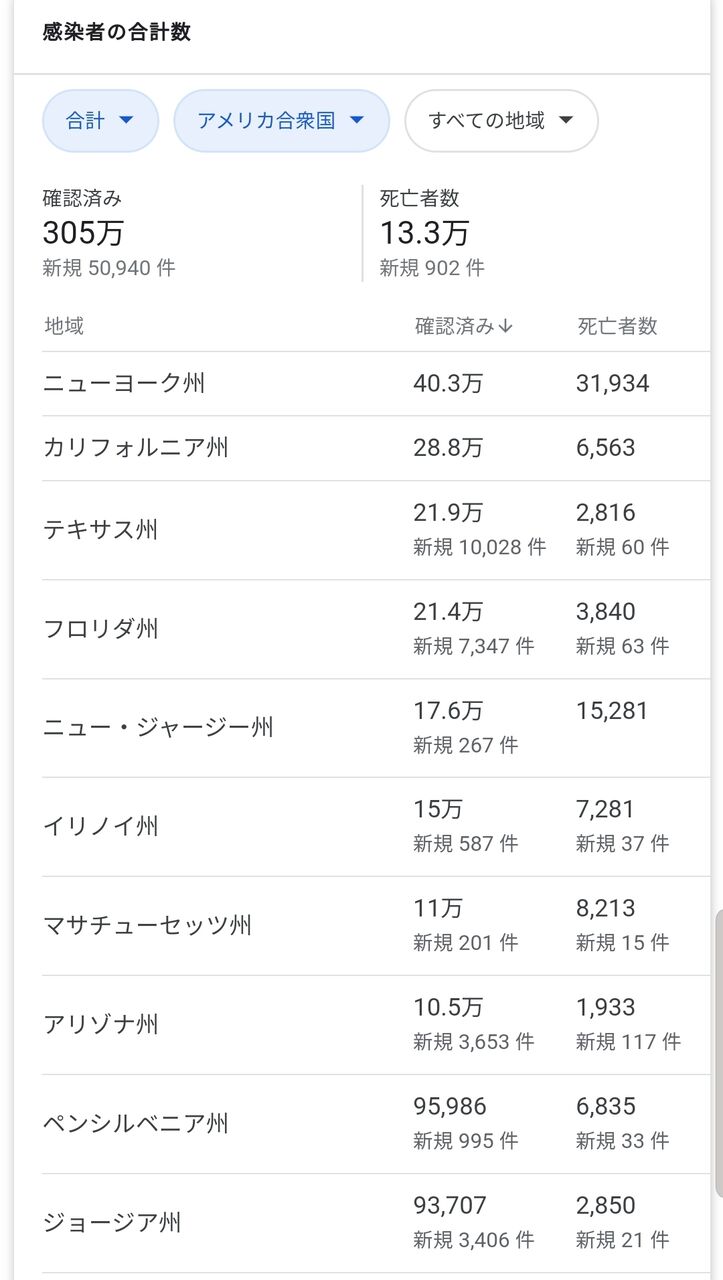 アメリカ国内になるけど感染者も死者も黒人がダントツで高くて