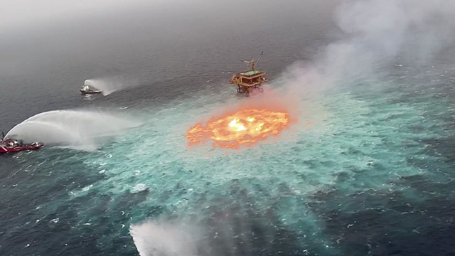 メキシコ湾の海底ガスパイプラインの火災の映像、「海中が燃える」という見たことない絵面で凄いな・・・ https://t.co/krJOP38rX1