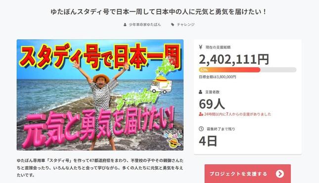 ゆたぼんさんが、2022年1月26日に公式YouTubeチャンネルに公開した動画で、自ら立ち上げたクラウドファンディングのプロジェクトに支援が集まらないことを嘆いた。