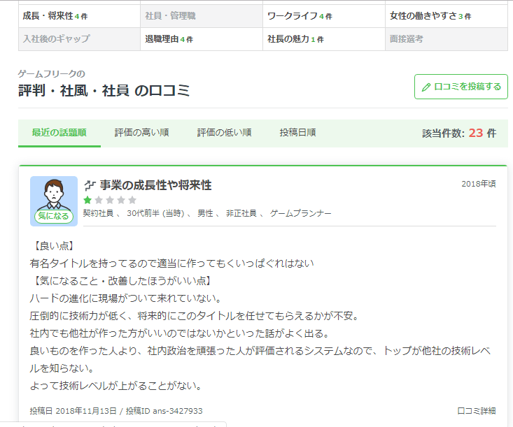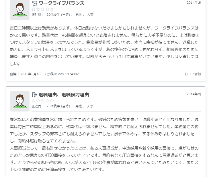 転職会議は退職者しか書き込んでないから基本的に不満コメントしか無いんだよな