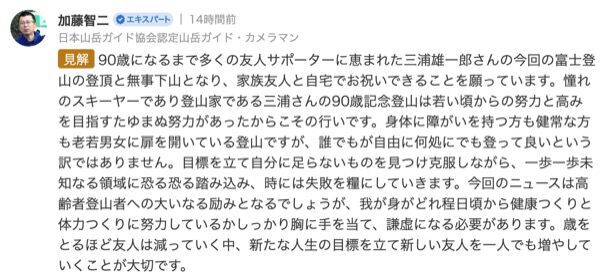 三浦さんは87歳だった2020年6月に「特発性頸髄硬膜外血腫」を発症し、約8カ月にわたり入院。リハビリの目標として富士登山を志した。