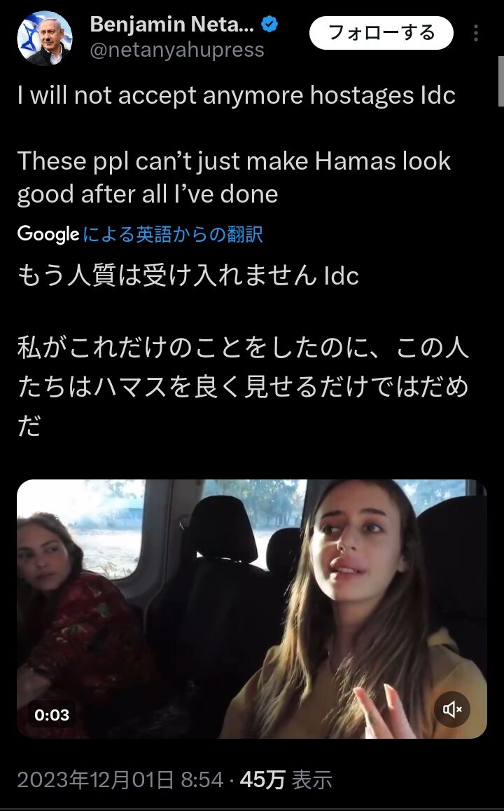 人質はハマス!!