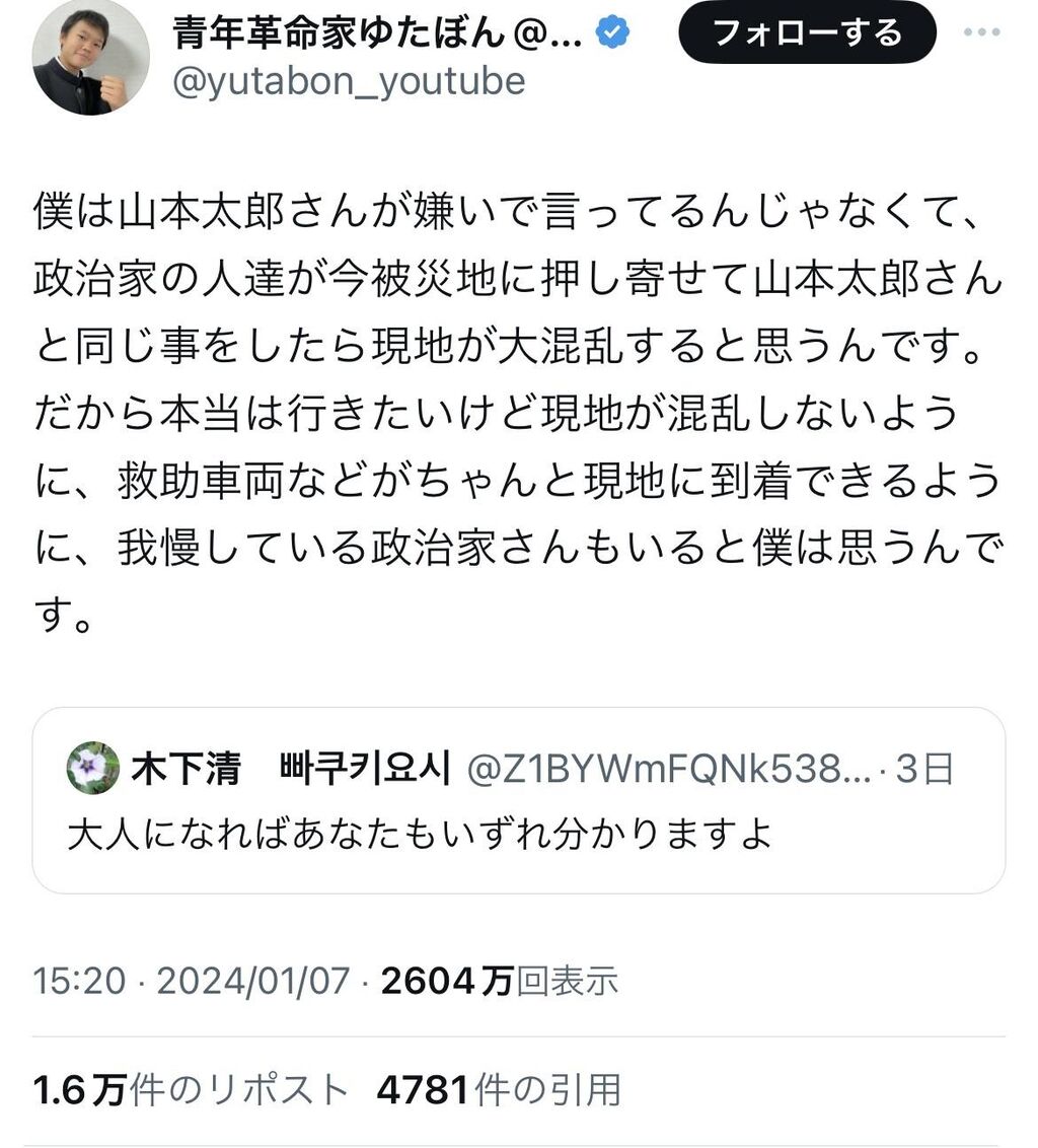 ゆたぼん散々バカムーブしてたからマトモになっただけで凄い聖人君子のような存在になってる。