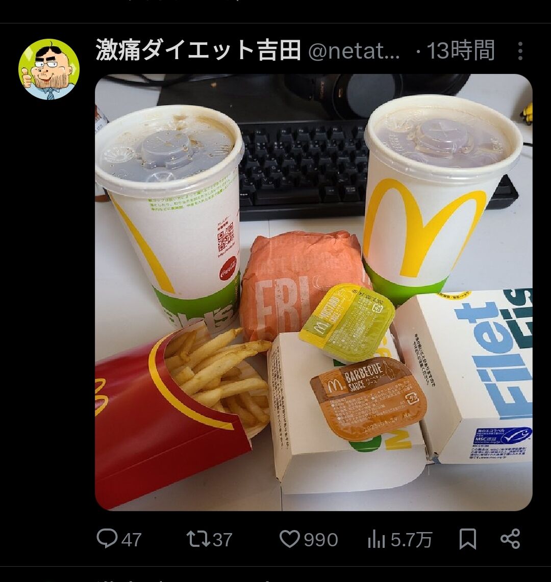 ハンバーガーは完全栄養食やしポテトは野菜やからこのラインナップは理にかなってる