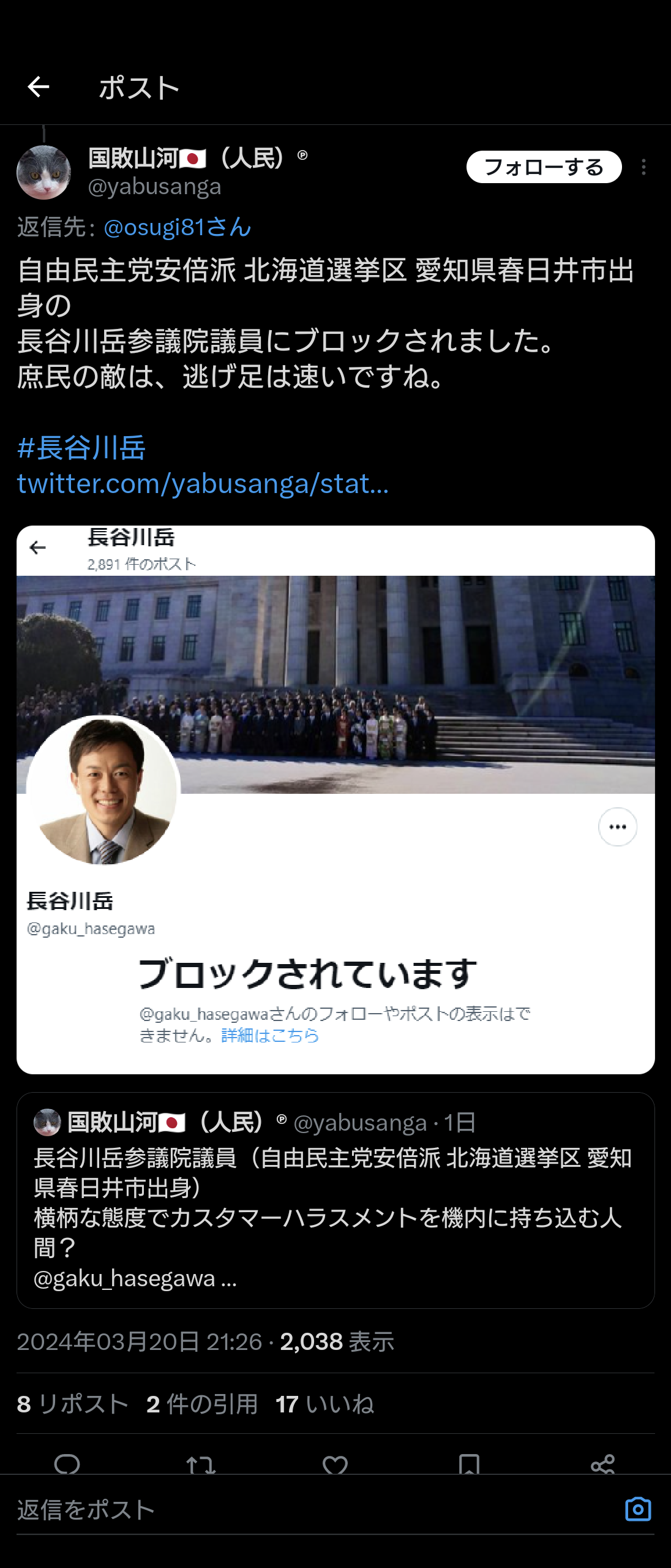 本人のX悲惨なことになってる