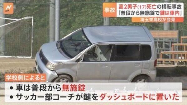 - 【悲報】埼玉栄高校、生徒が車でグラウンドを走行し横転、1人死亡
