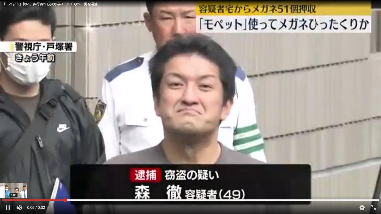森容疑者は、ペダル付き原付バイク「モペット」に乗って歩行者に近づき、かけていたメガネをひったくった疑いが持たれている。