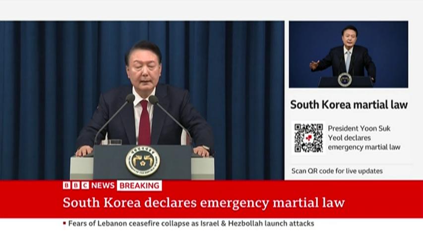このなかで、予算案に合意しないなど野党の一連の対応を批判した上で「国政はまひ状態にある。憲政の秩序を守るために非常戒厳を宣布する」と明らかにしました。韓国で非常戒厳が出されるのは1987年に民主化が宣言されて以降、初めてとなります。