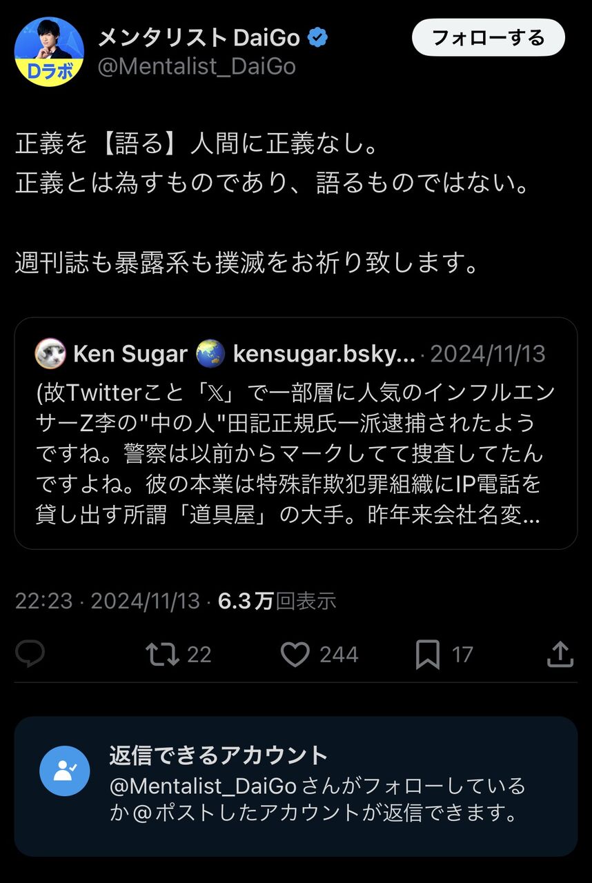 Z李「俺をトクリュウとか闇バイト元締め扱いしちゃった人たちの一部は来年結構残念な事になる」