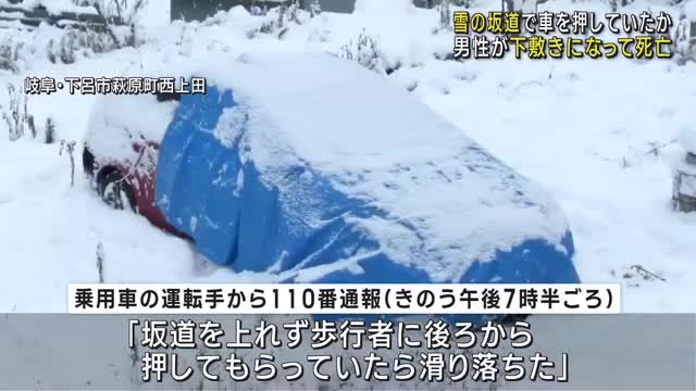 雪の坂で車を押すなんて自殺行為だろ