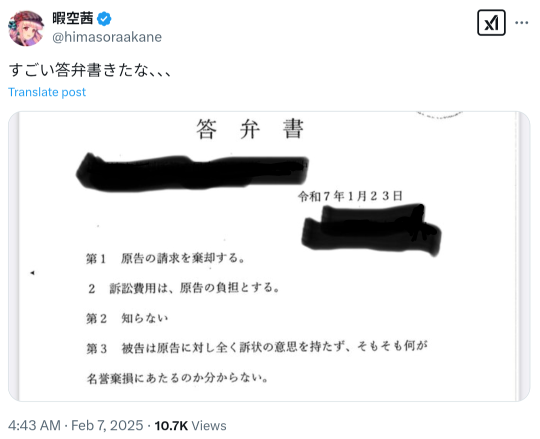 ・暇空くん、なぜかまったく取り合わず裁判続行