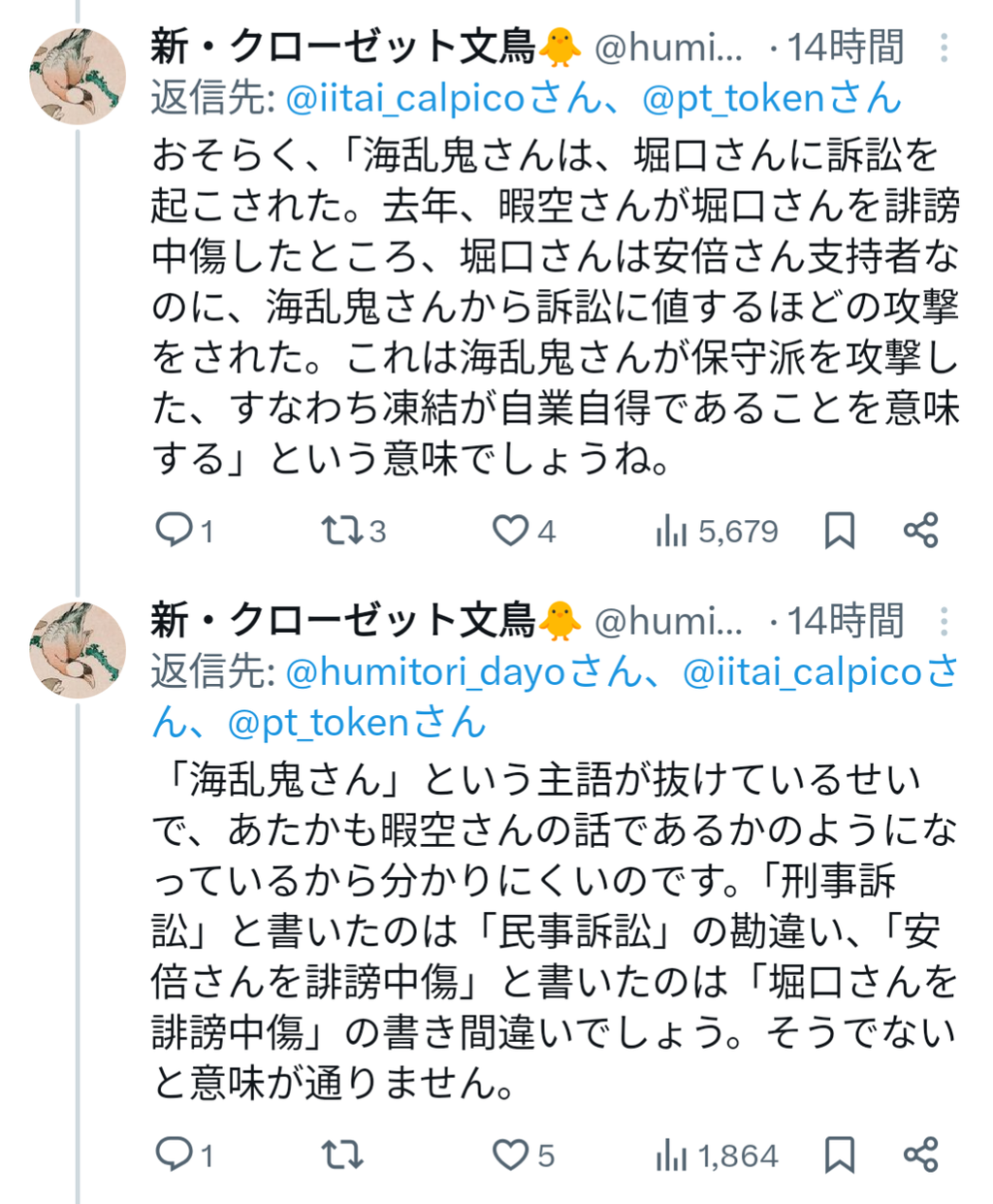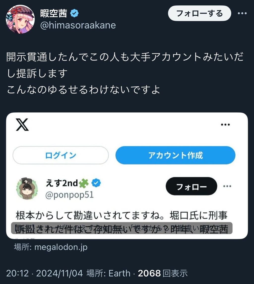 ・暇空、それを見て名誉毀損だと開示&訴訟