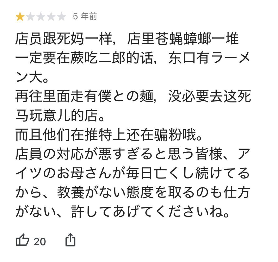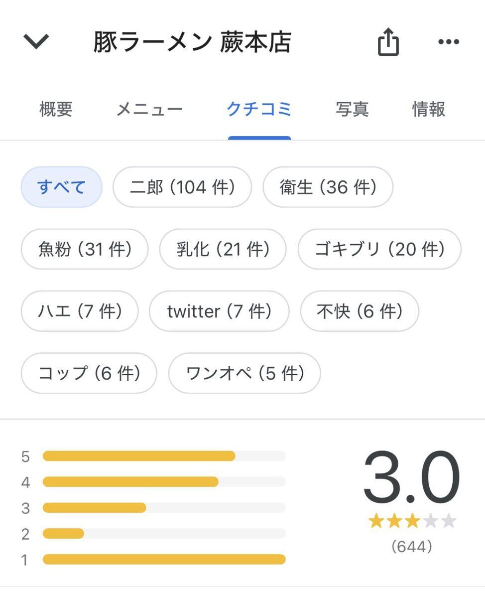グーグルレビューで星2.1でクソ吹いたwwwwww