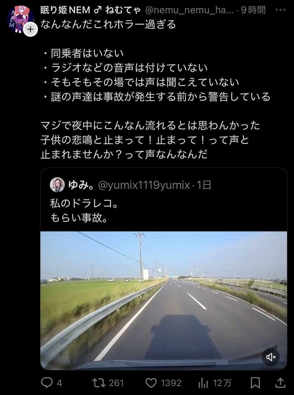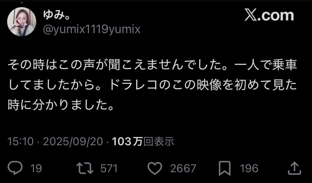 まあ誰も乗って居なかったと言うのが事実ならば運転手本人の声と言う事になるな。