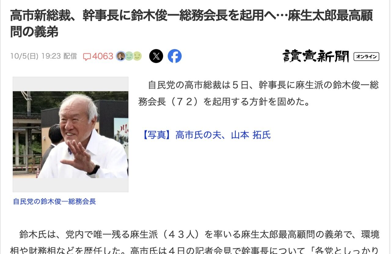 鈴木じゃ解党的出直しとも積極財政とも逆行してるやろ
