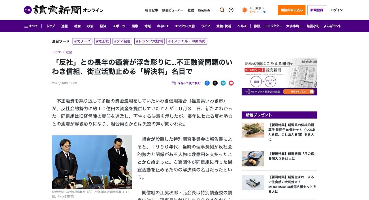 「反社」との長年の癒着が浮き彫りに…不正融資問題のいわき信組、街宣活動止める「解決料」名目で