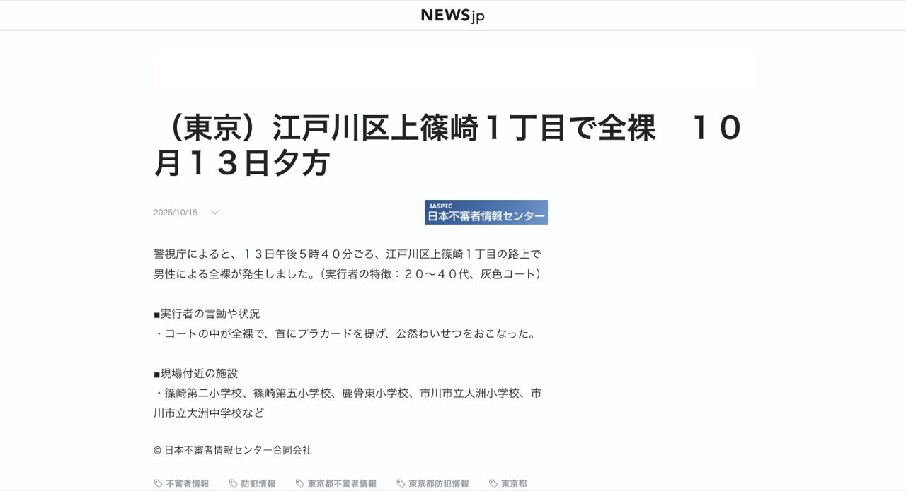 - 【京都】女性に向かってロングコートの前をはだけて全裸を披露、オールドスクールな変態が発生