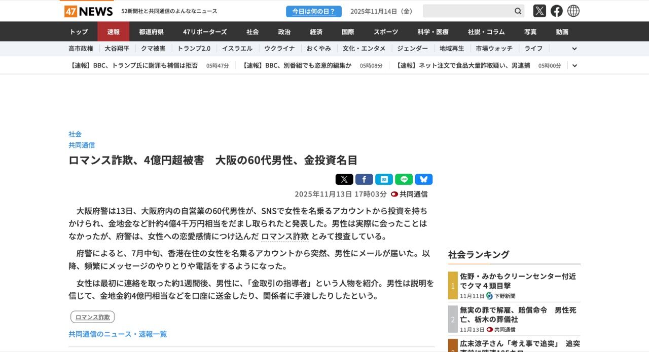 ロマンス詐欺系の事件を見るたびに毎度不思議な気持ちになる