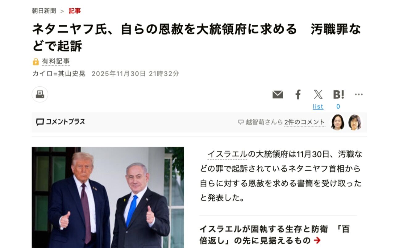 大統領はネタニヤフを恩赦するんじゃなくてクビにするべきでは?