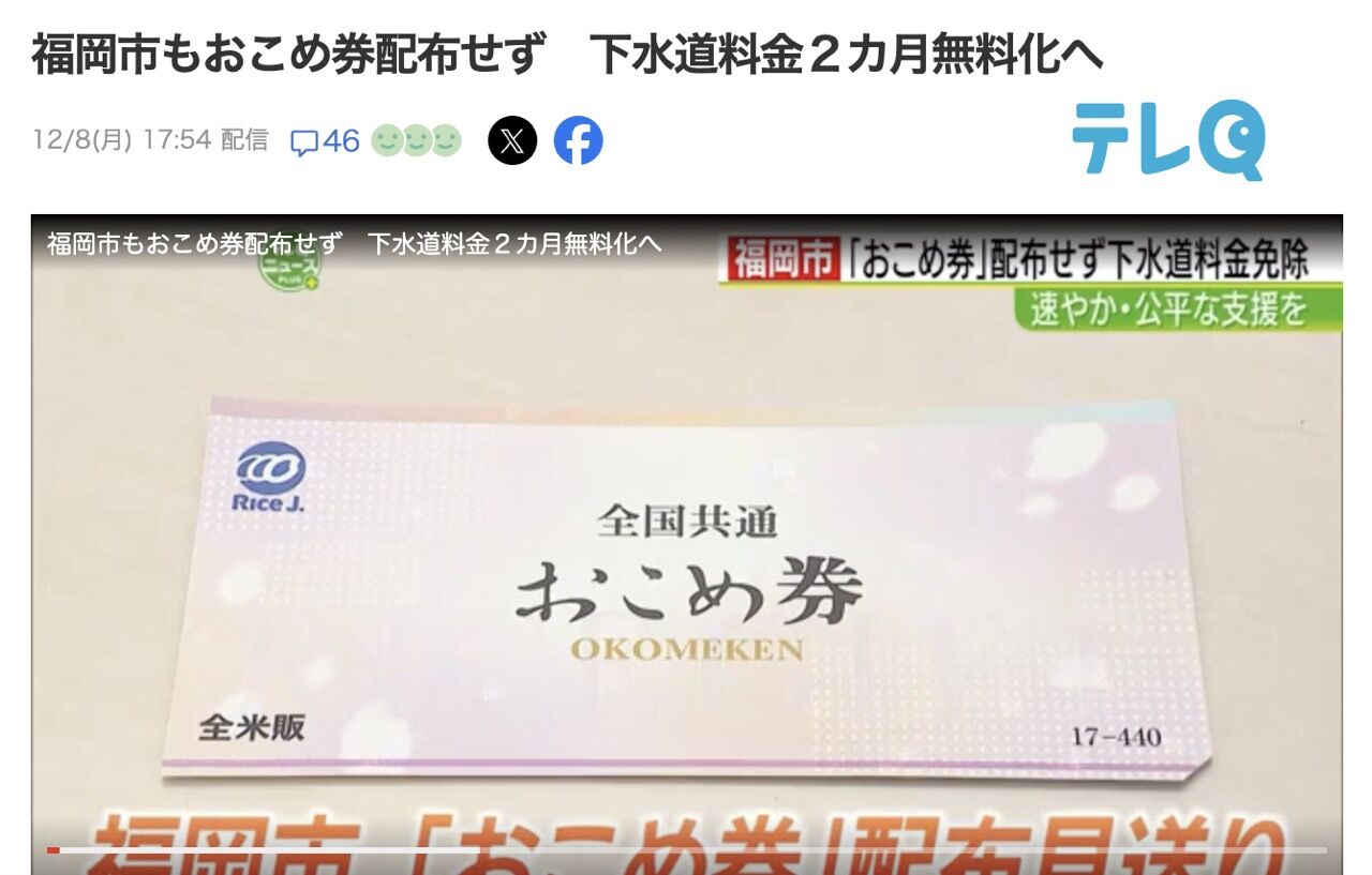 - 【悲報】おこめ券、全員もらえなさそう