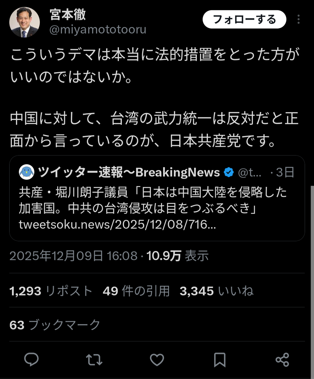 共産党「侵略者だった日本には台湾を守る権利はない」
