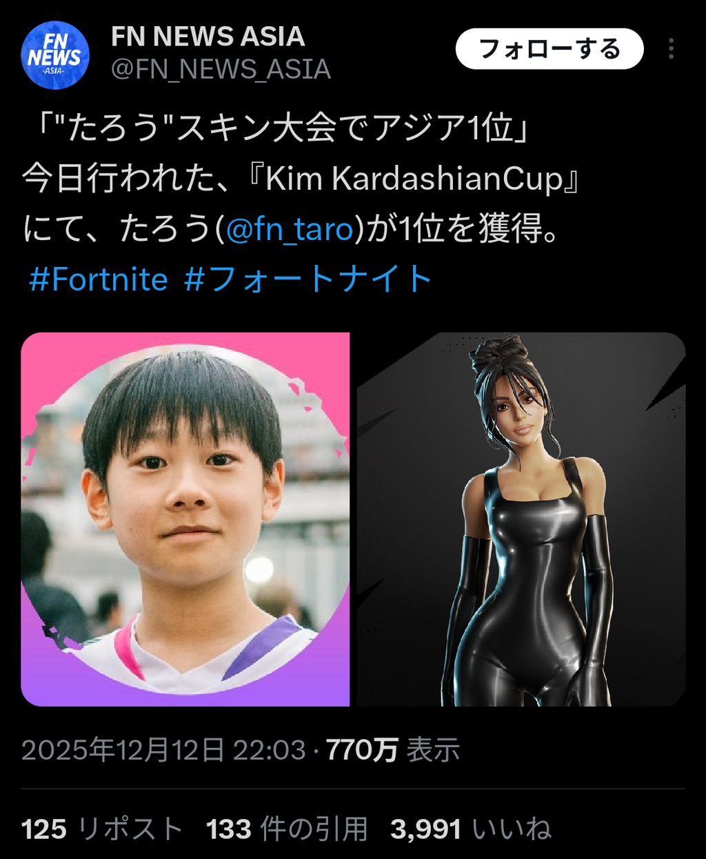 フォートナイトの「Kim Kardashianカップ」は、賞金ではなく、ゲーム内アイテムの早期アクセス権(スキン)を獲得するための大会です。