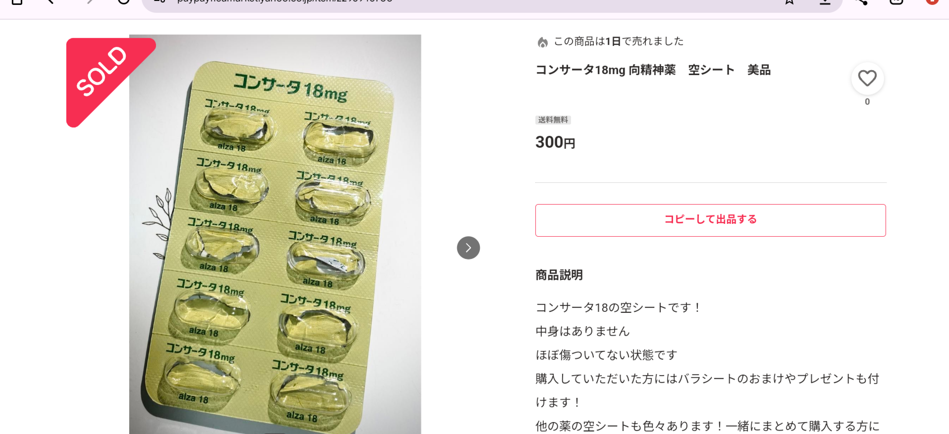 ワイのデュタステリドの空シートとミノタブの空き容器も売れるかな?