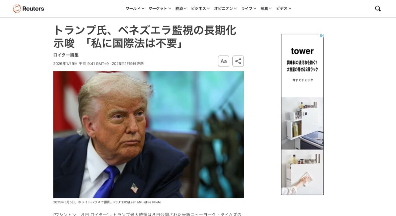 国連人権高等弁務官事務所は、ベネズエラに対する米国の軍事作戦は国際法に反し、世界の安全を脅かすものだとしているが、トランプ氏は同紙に「私には国際法は必要ない」と発言。