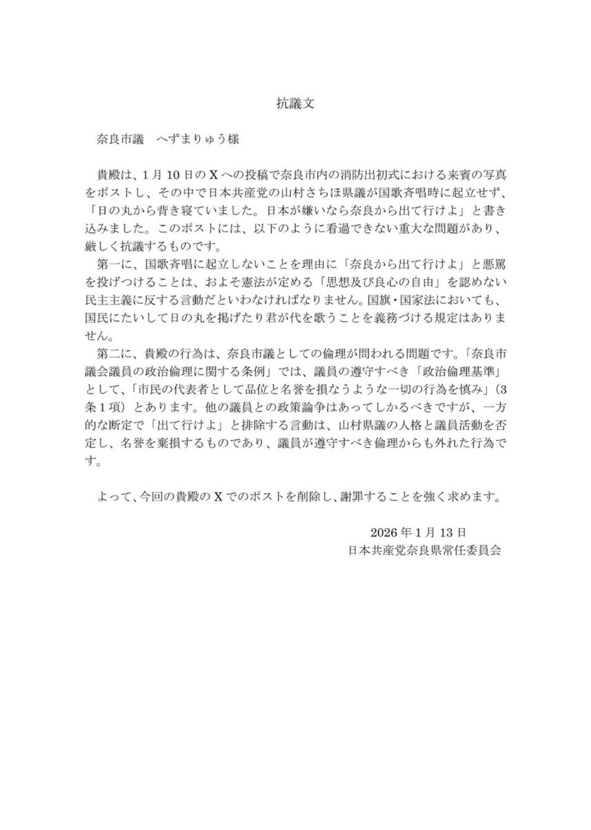 共産党議員が国歌を歌わず、国旗にも敬意を払わないのは