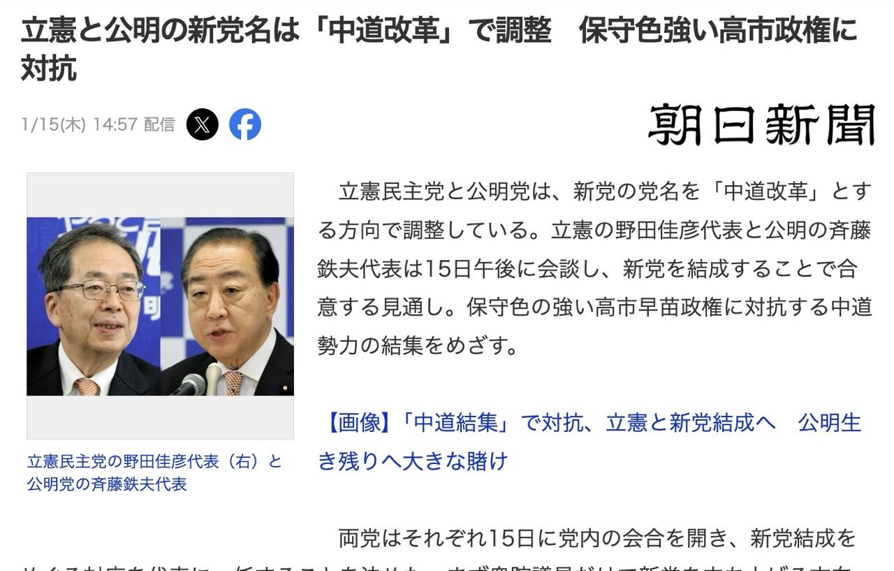 - 【政治】高市早苗さん、公明党連立離脱で総理大臣になれない可能性が浮上