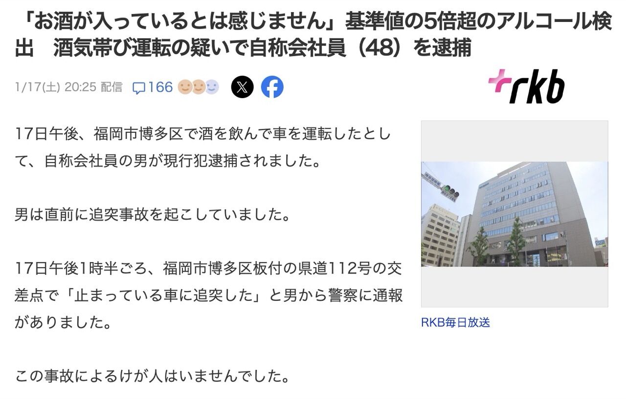 ちょっと福岡の飲酒運転事件多すぎない?