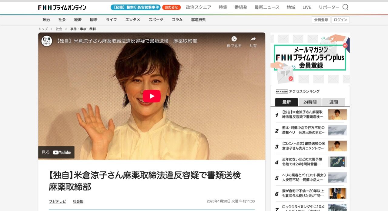 【独自】米倉涼子さん麻薬取締法違反容疑で書類送検 麻薬取締部|FNNプライムオンライン