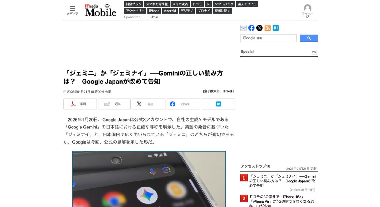 2026年1月20日、Google Japanは公式Xアカウントで、自社の生成AIモデルである「Google Gemini」の日本語における正確な呼称を明示した。英語の発音に基づいた「ジェミナイ」と、日本国内で広く用いられている「ジェミニ」のどちらが適切であるか、Googleは今回、公式の見解を示した形だ。