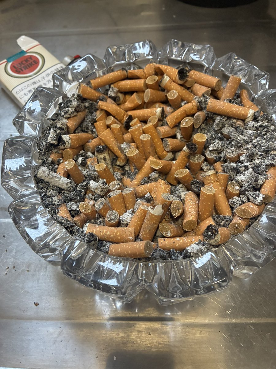 2枚目灰皿の吸い殻のフィルターが白いから100%吸ってない。ま、どうでもいいけど