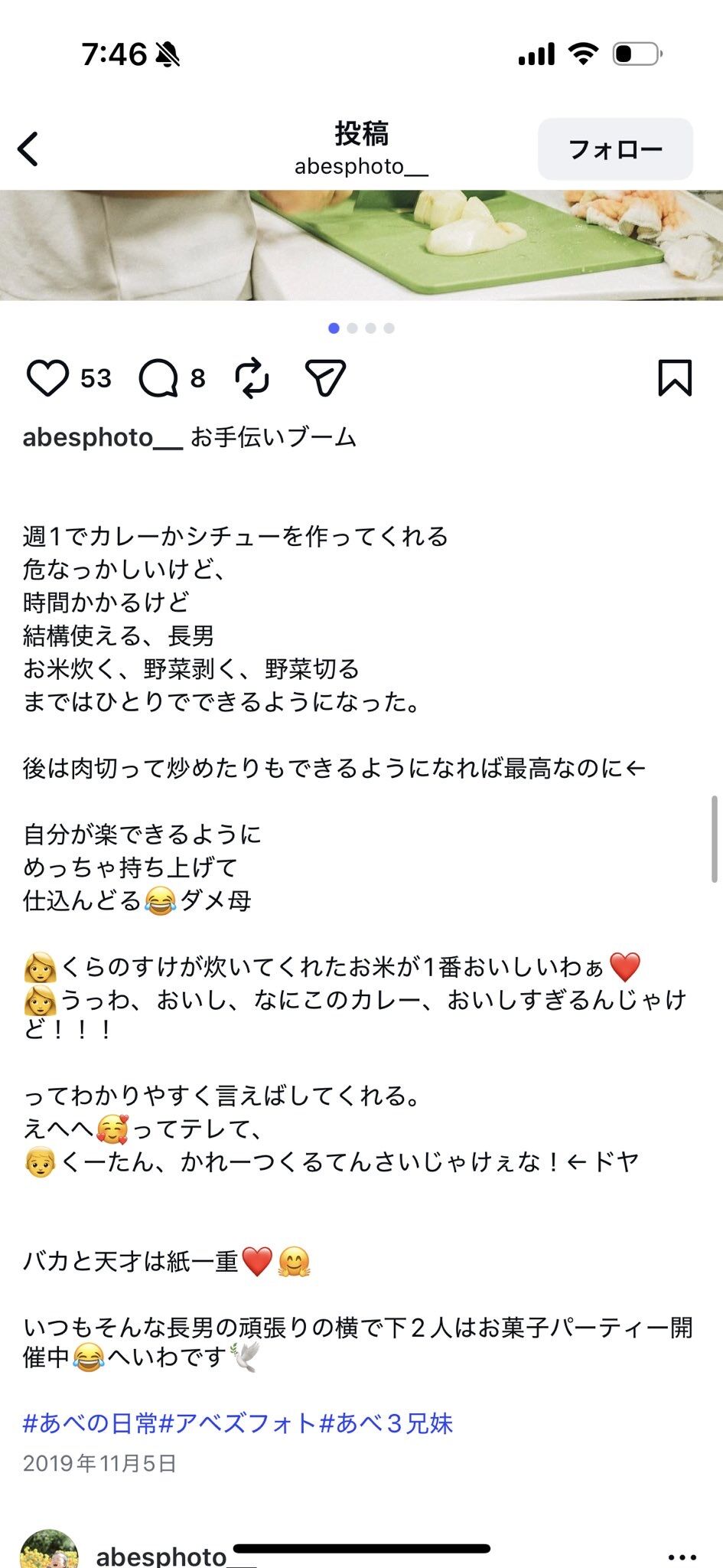 インスタ見たけど、何年も前から食事作らせたりしてるみたいだけど