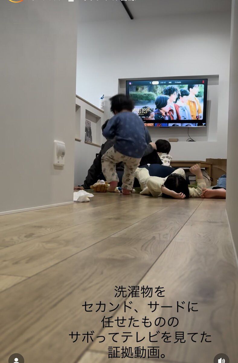 そのうち、父親は仕事へ行き、家には子どもたちだけになった。せいやは赤ちゃんをあやしたりおむつを替えたり、お昼ご飯を作った後は片付け、洗濯物とエンドレスに続く家事をこなした。普段は長男がやっている家事だが、1児の父親であるせいやもへとへとに。