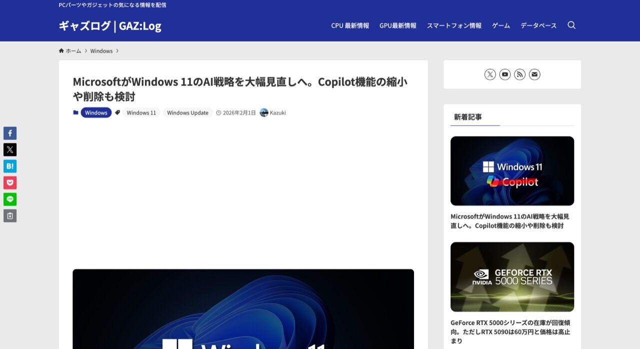 MicrosoftがWindows 11のAI戦略を大幅見直しへ。Copilot機能の縮小や削除も検討