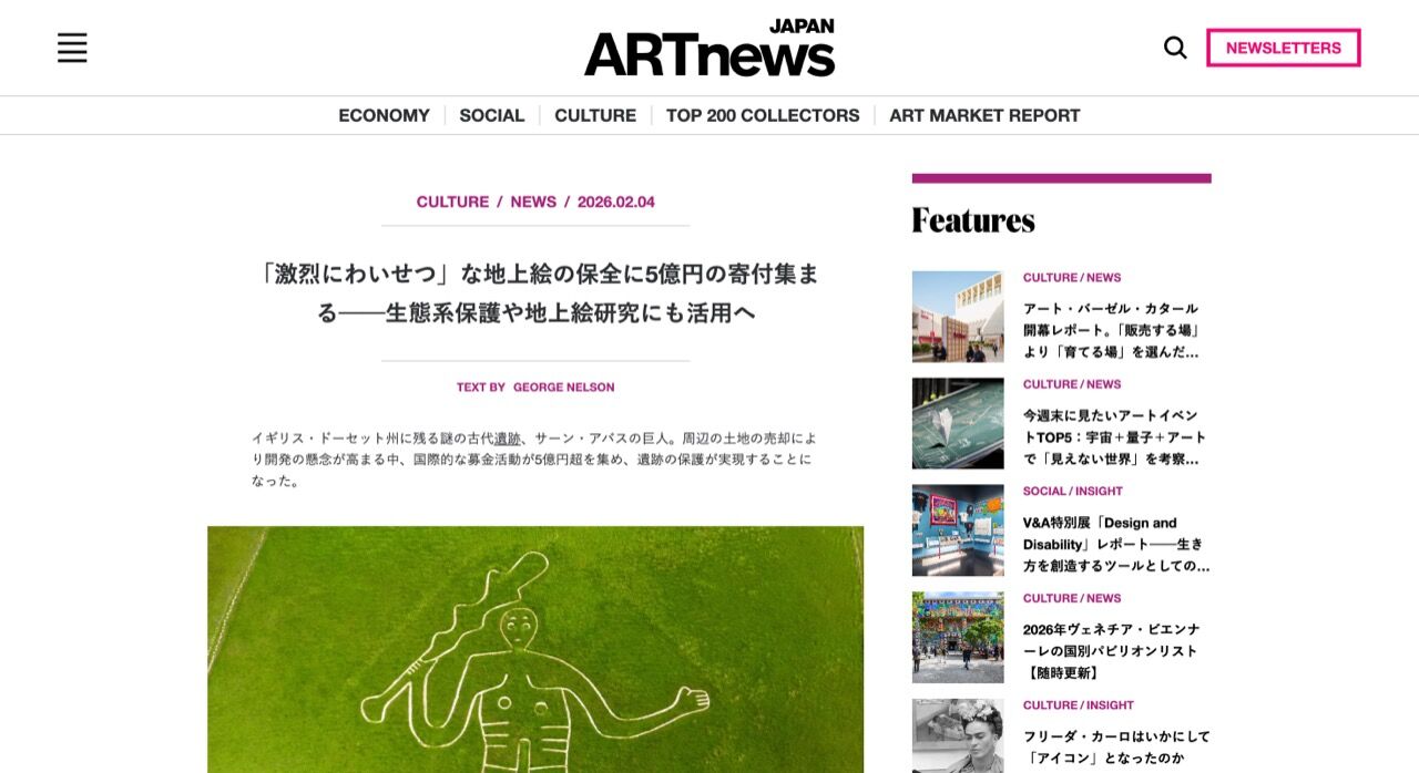 イギリス・ドーセット州に残る謎の古代遺跡、サーン・アバスの巨人。周辺の土地の売却により開発の懸念が高まる中、国際的な募金活動が5億円超を集め、遺跡の保護が実現することになった。