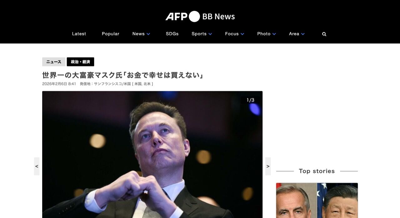マスク氏は4日夜、X(旧ツイッター)で、「『お金で幸せを買えない』と言った人は、本当にその通りだとわかっていたんだね」と述べ、最後に悲しい顔の絵文字を添えた。この投稿は、5日深夜までに6600万回以上閲覧された。
