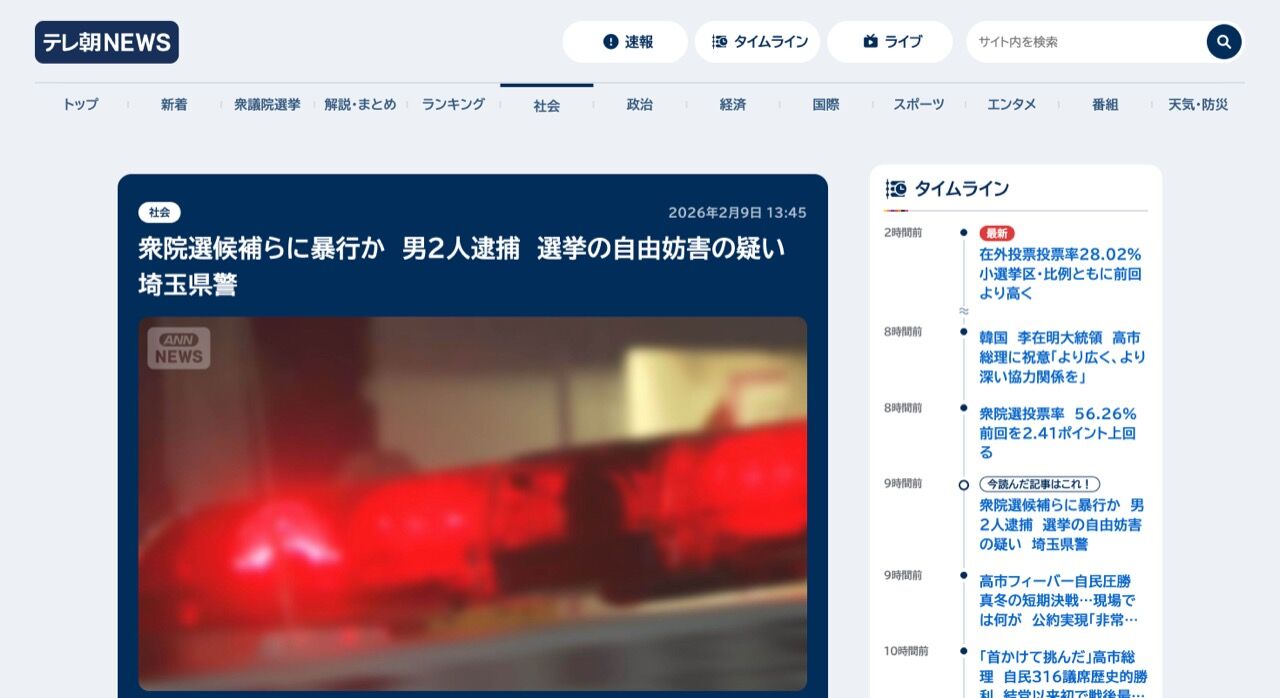 8日に投開票された衆議院選挙の候補者や運動員に暴行をしたとして、埼玉県警は男2人を公職選挙法違反の疑いで逮捕・送検しました。