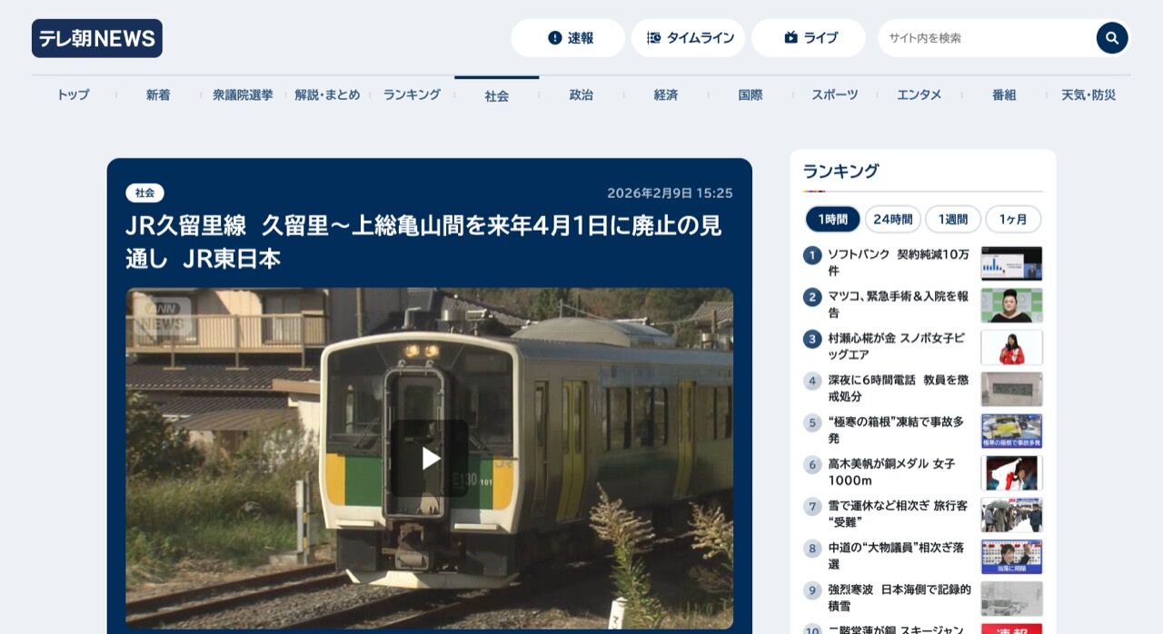 - JR東日本、久留里線(千葉)の廃止届を提出へ