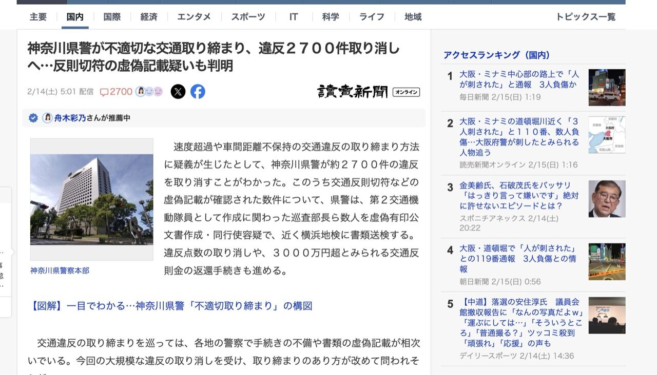 未だに神奈川県警がギャグ扱いで済んでるのすごいよな
