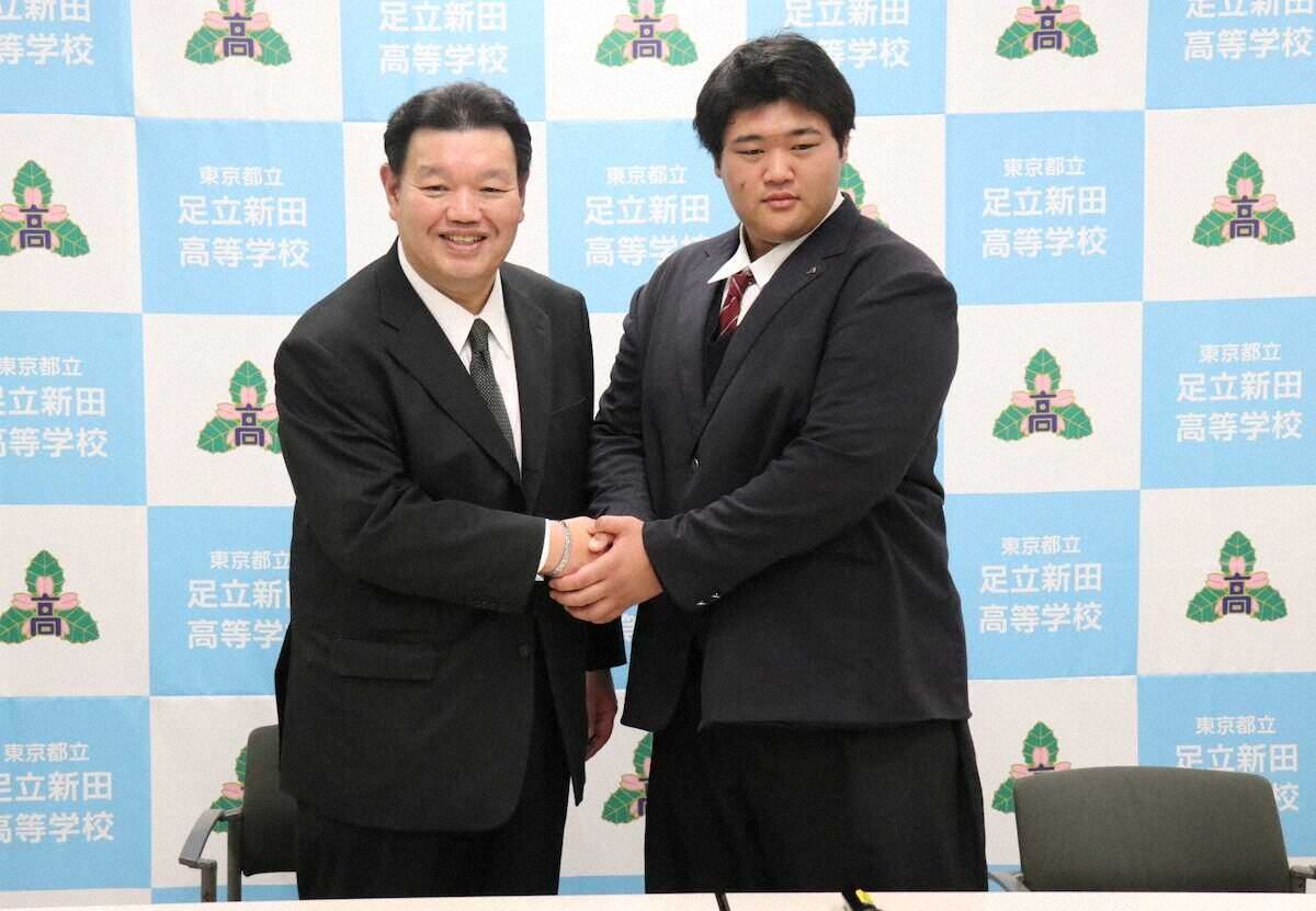 昨年の全国高校総体3位、全国高校選抜十和田大会準優勝、国民スポーツ大会少年の部準優勝などの実績を持ち、春場所(3月8日初日、エディオンアリーナ大阪)で、三段目最下位格付け出しで初土俵を踏む。