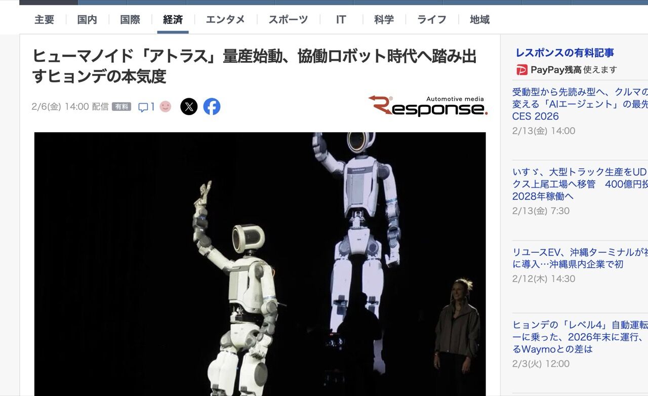 ヒューマノイド「アトラス」量産始動、協働ロボット時代へ踏み出すヒョンデの本気度(レスポンス) - Yahoo!ニュース